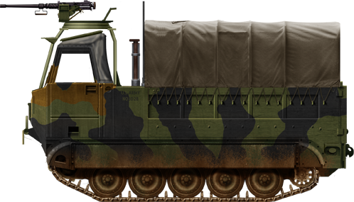 The M113 became the most affluent of armoured personal carriers with 100,000 manufactured over the years. It was designed by the Food and Mach. Corporation, and a well-known figure of the Vietnam war. But the chassis was cheap and also proved adaptable, leading to scores of variants. Some were specialized and unarmoured. This was the case of the M548 Cargo Carrier, answering the need for a tracked supply vehicle for the rear lines. From the start it was called to be used as a general purpose tractor and supplier with a payload of 5.4 tonne capacity. Unlike trucks used from 1960 it had a better off-road capabilities due to its lower ground pressure, helped by its aluminium and composite chassis. It was derived not fropm the first variant, but from the improved M113A1 APC, and using its drivetrain and running gear. It could be transported by fixed and rotary-wing aircraft and was amphibious (it could float without preparation).