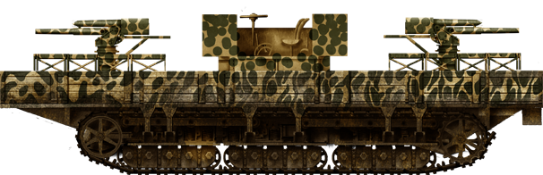In WW1, the Germans used the A7V chassis as a starting point to develop several other variations. Although most would be used for the A7V Überlandwagen rough terrain tracked supply vehicle, others were used to create unique vehicles, such as a trench digging machine and the anti-aircraft version known as the A7V Flakpanzer.